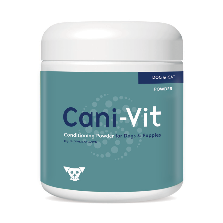 Commercial dog foods may not always cater for every dog’s nutritional needs. Cani-Vit was formulated with this principle in mind. It contains vitamins and minerals present at levels recommended by leading authorities. ‘·2 Vitamin E is present at a high level ( I 5iu per 5g dose). Selenium is an essential nutrient. It has been reported to protect against lead, cadmium and mercury poisoning . Selenium deficiency in dogs can lead to-degeneration of skeletal and cardiac muscle . Other effects of deficiency include reproductive disorders and oedema. Few pet nutritional supplements contain selenium ; in Cani-Vit it is present at the generally recommended level of 10 micrograms per 5g dose. High dietary calcium content or a vegetable protein-based diet (e.g. dry dog foods which are largely soya) can dramatically increase the zinc requirement of the dog. A study’ reported signs of zinc deficiency in dogs receiving cereal-based dry diets which contained zinc levels that were actually above the NRC minimum requirement (due to a reduction in bioavailability of the zinc because of the presence of phytic acid in the food). The link between zinc and skin and coat condition makes this trace element particularly crucial for the animal. Zinc is relatively non-toxic and at 10mg per 5g dose Cani-Vit contains more zinc than most other pet nutritional supplements . The Calcium/Phosphorus ratio of Cani-Vit at 1:1 is in the generally accepted optimum range for dogs and the calcium is easily assimilated. Cani-Vit also contains a large amount (30%) of high-grade protein and its base of real liver and real cheese enhances palatability. Dose: Given daily, mixed in or sprinkled over food. Adult dogs: one to three level 5g measures, depending on size of dog. Puppies : half to one level measure Packing: 250g jar, 5kg bucket (5g measure included) Storage: Store in a cool dry place away from direct sunlight. Registration: V10326 Act 36/1947