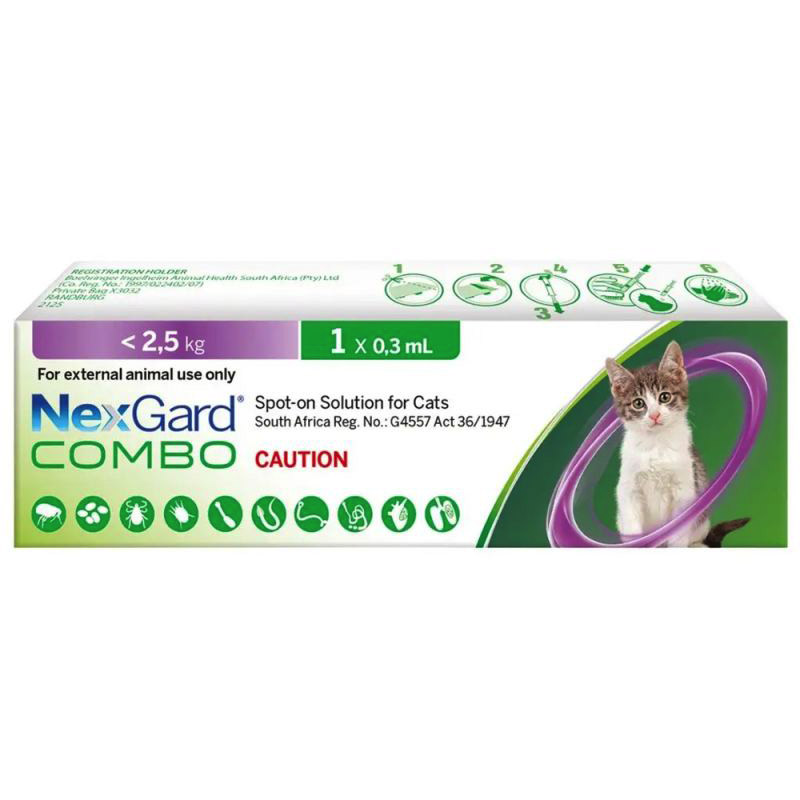 The most complete parasite protection for cats, all in one easy, monthly application. Provides effective flea treatment for cats, as well as protection from ticks, mites, intestinal worms, tapeworm, heartworm and lungworm.