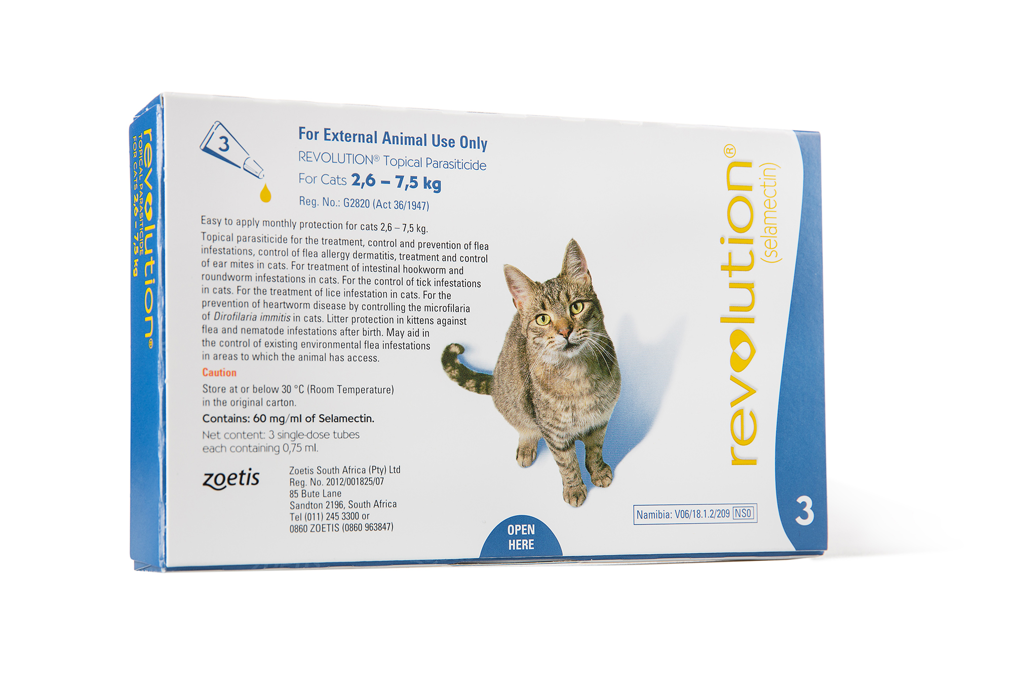 Revolution Cat protects cats against fleas, ear mites, heartworm disease, roundworms, and hookworms.